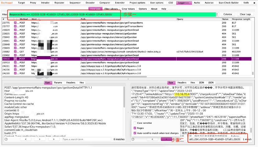 步骤二中查询响应包内容时候,正则不需用//包含;